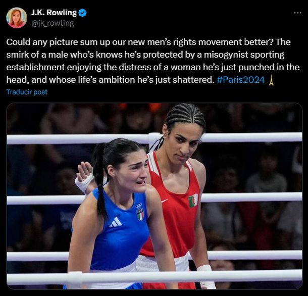 La creadora de Harry Potter, J.K. Rowling, volvió a generar una polémica por un mensaje en sus redes sociales vinculado a la participación de la boxeadora intersexual Imane Khelif en los Juegos Olímpicos de París 2024.