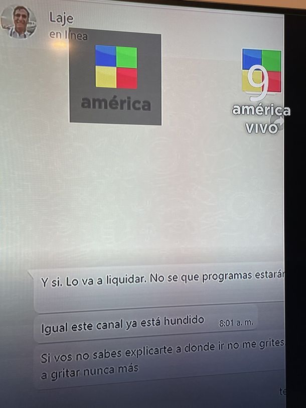 "Y sí, lo va a liquidar. No se qué programas estará. Igual este canal ya está hundido", se llega a leer en el chat de WhatsApp.