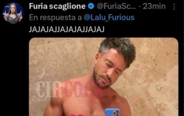 La publicación fue realizada por Furia Scaglione, quien utilizó su cuenta de X para compartir la imagen acompañada de una frase provocadora: “Lo único bueno que tenía para dar y ni lo mostró”. La publicación fue rápidamente replicada y generó una catarata de críticas hacia ella por haber divulgado un contenido íntimo sin consentimiento.