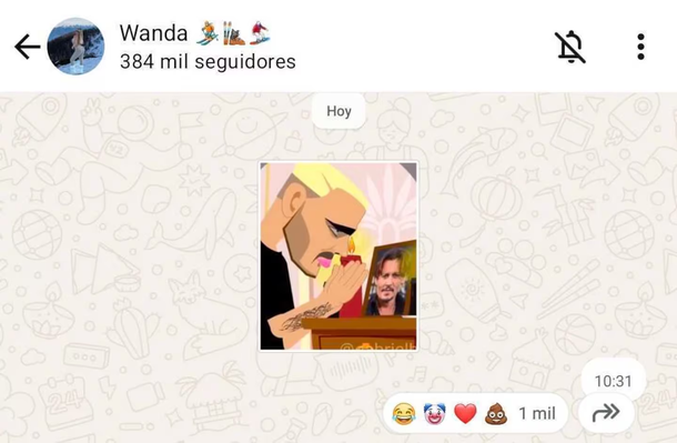 En esa conversación, Wanda dejó algunas lindas palabras y reflexiones sobre los “casi algo”, pero en medio de todo eso, envió un sticker que dejó a todos hablando: una ilustración de Mauro Icardi arrodillado, rezándole a Johnny Depp.