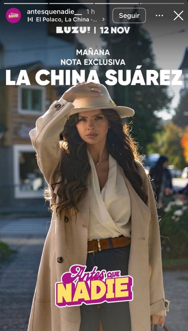 La noticia fue confirmada por Fede Bongiorno en X, quien informó sobre la esperada aparición: “La China Suárez será la invitada mañana en #AntesQueNadie por LUZU TV”.