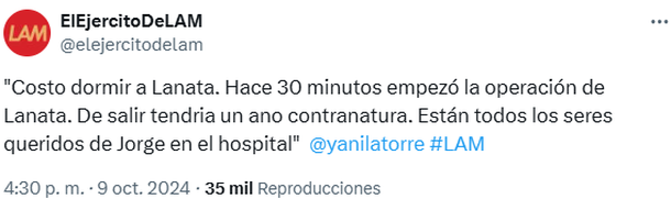 Como era de esperarse, esta información sacudió al ambiente artístico en medio de la preocupación por la salud del periodista. Se espera que en las próximas horas haya novedades del estado de Lanata, tras la intervención.