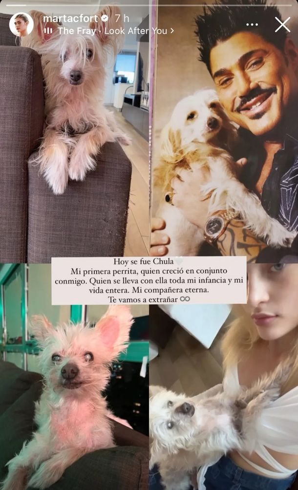 Marta Fort vivió momentos muy duros a lo largo de su vida como lo fue la muerte de su papá, Ricardo, cuando ella y su hermano mellizo Felipe tenían tan solo 9 años. Ahora la joven reveló que sufrió otra dolorosa pérdida familiar que la dejó desconsolada. Justamente, habla de su perrita, Chula, a quien la despidió en sus redes sociales.