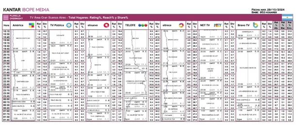 Por su parte, Telenoche por eltrece midió 5.2, seguido por The Floor con 4.9 y Los 8 Escalones con 4.8. En América, en Cantando 2024 no levanta cabeza, con Karina Mazzocco en la conducción alcanzó solamente 2.8 puntos de rating, mismo número que LAM, que perdió ante los 3.5 de Bendita en El Nueve.
