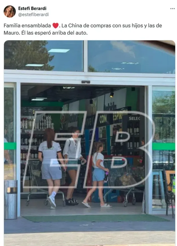 “Familia ensamblada: La China haciendo compras con sus hijos y las niñas de Mauro, mientras él las esperaba en el auto”, comentó la panelista junto a la imagen que generó revuelo en redes sociales.