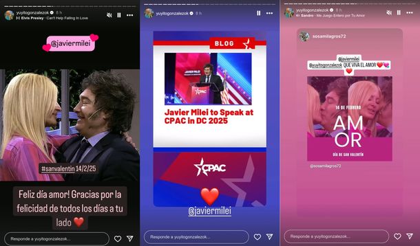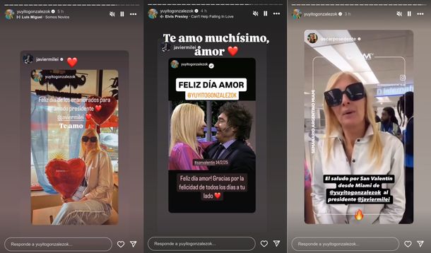 Globos, fotos, emojis, canciones de Luis Miguel y caricaturas de Nik, Amalia "Yuyito" González usó este viernes todos los recursos de las redes sociales para hacerle llegar su cariño a Javier Milei a propósito de San Valentín, conocido también como el Día de los Enamorados.