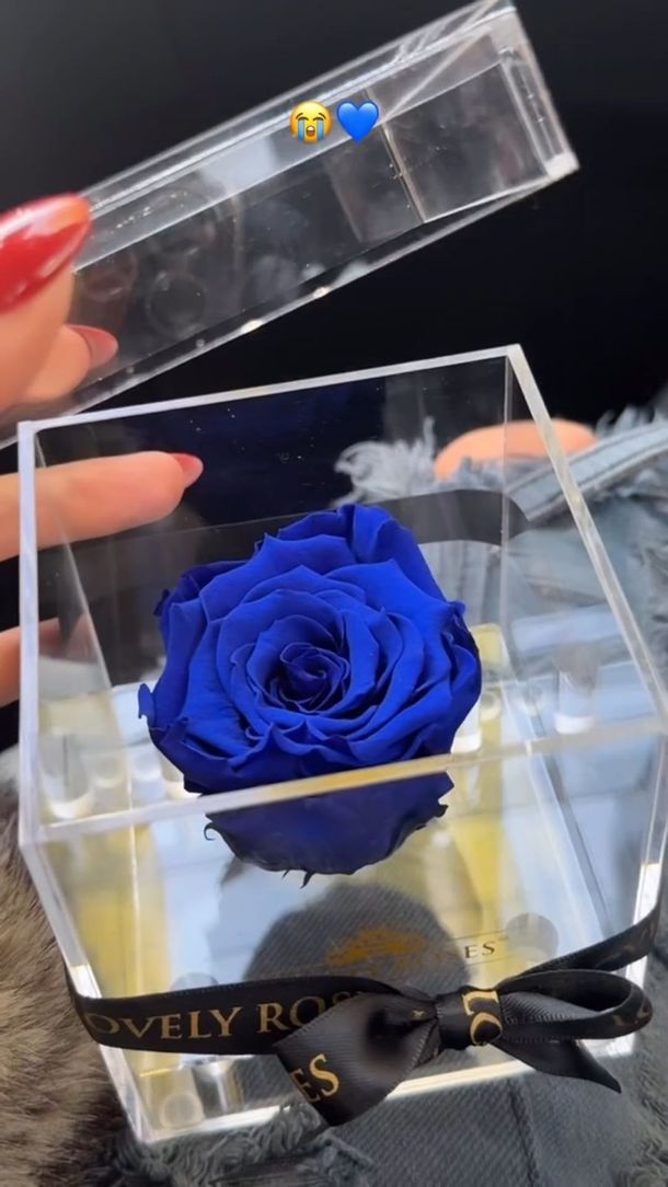 Mientras hablaba, grabó con su celular una cajita de cristal con una rosa azul objeto inspirado en la clásica película de La Bella y la Bestia y agregó: “Hace un montón venía viendo unos TikTok virales de la rosa eterna”.