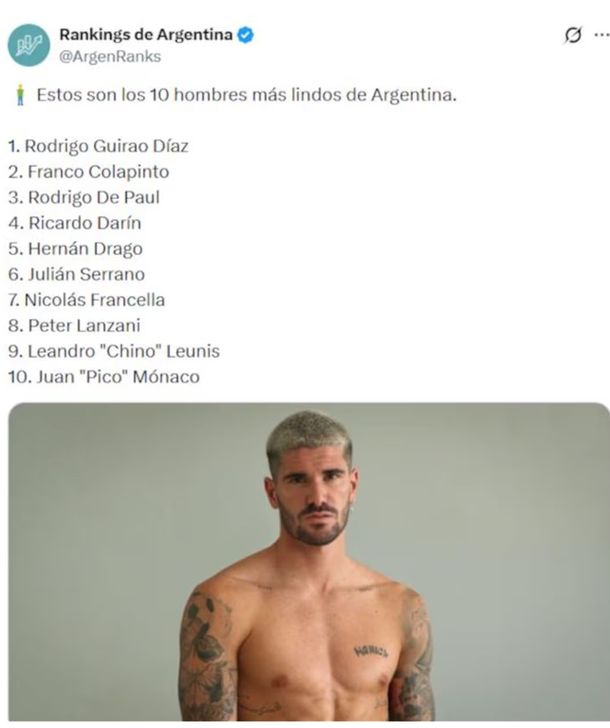 La publicación de un ranking titulado “Los 10 hombres más lindos de la Argentina” causó un verdadero impacto en redes sociales y se transformó rápidamente en uno de los temas más comentados. El listado, difundido por la cuenta Rankings de Argentina en X, alcanzó más de un millón de visualizaciones en poco tiempo y abrió un intenso debate entre los usuarios, con bromas, ironías y reclamos por varias ausencias.
