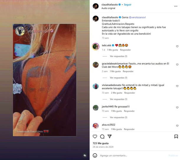 Fasolo, con una amplia trayectoria en los medios y una figura muy respetada en la industria, trabajó durante años junto a grandes nombres como Susana Giménez, Georgina Barbarossa y Lucho Avilés. Pero esta fue la primera vez que decidió hacer público el tatuaje que tiene desde hace tiempo, aunque hasta ahora lo había mantenido en el ámbito privado.