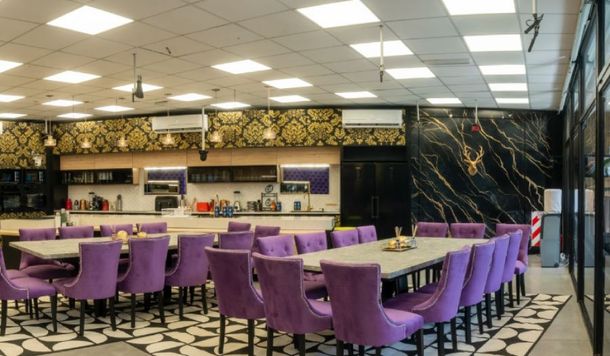 En los espacios comunes, como el comedor, la cocina y el living, domina una paleta violeta que se extiende por paredes y mobiliario, combinada con detalles dorados de aire vintage. Ese mismo concepto se replica en el marco que rodea al televisor donde los participantes mantienen contacto con el conductor, reforzando una estética más recargada.