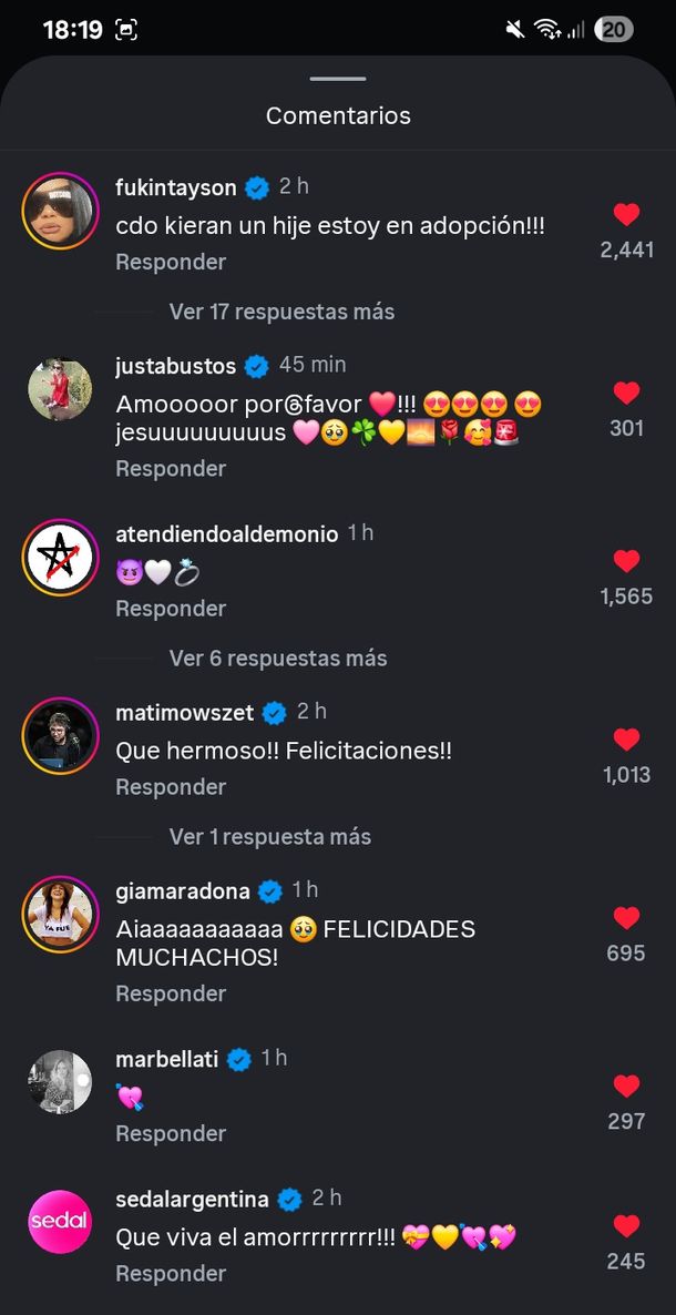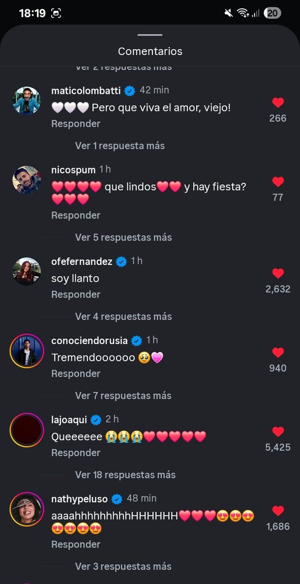 Obviamente, los famosos no tardaron en reaccionar al notición: Micaela Tinelli, Luli Fernández y Lucila "Tora" Villar fueron las primeras en comentar.