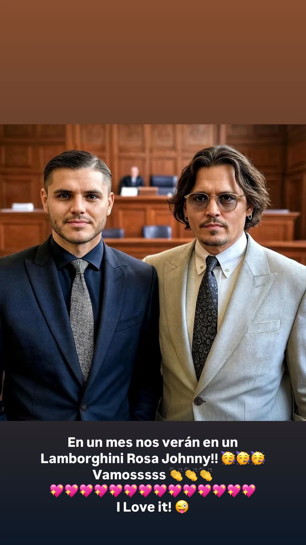 “En un mes nos verán en un Lamborghini rosa, Johnny”, escribió Icardi sobre la imagen, dejando en claro su intención de relacionar su situación actual con la del actor. Como si eso no bastara, sumó un comentario cargado de sarcasmo que reforzó aún más el tono de su publicación: “Vamos. I love it”.