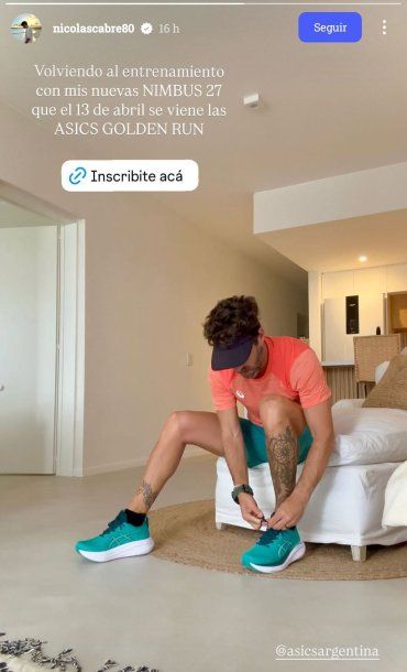 En las últimas horas, se supo que hizo Cabré en medio de la polémica que atraviesa su expareja. A través de su perfil de Instagram, el actor publicó una foto en la que mostró la actividad que realizó este domingo por la mañana. “Volviendo al entrenamiento”, escribió el ex de Eugenia Suárez en la historia que compartió. Según anticipó, se está preparando para una carrera que se hará el 13 de abril.