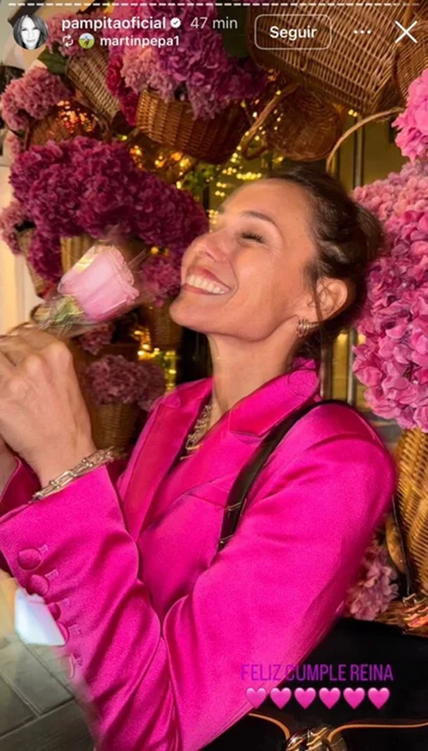 A las felicitaciones que recibió Pampita durante su cumpleaños también se sumaron mensajes de su entorno más cercano. Una de ellas fue Puli Dimaría, amiga íntima de la modelo, quien eligió saludarla con un video distendido en el que se las ve abrazadas y riendo en un bar, acompañadas por música y un clima de festejo. La DJ intervino la publicación con un sticker alusivo al cumpleaños y una dedicatoria especial: “Siempre así, mi amada @pampitaoficial. Te merecés todo y más. ¡Te amo!”.