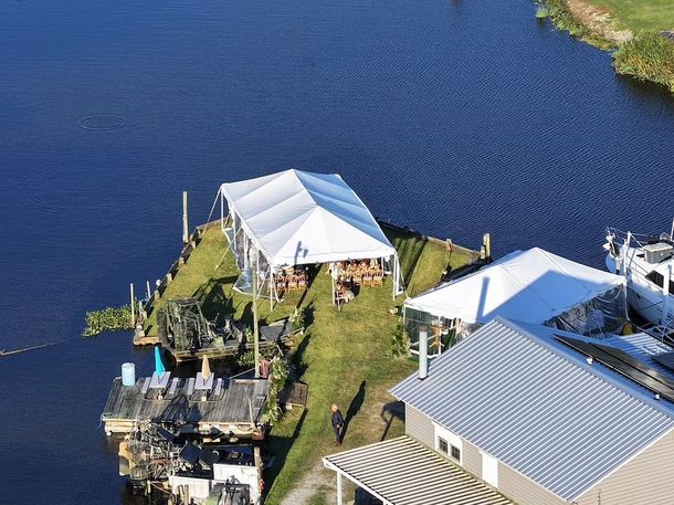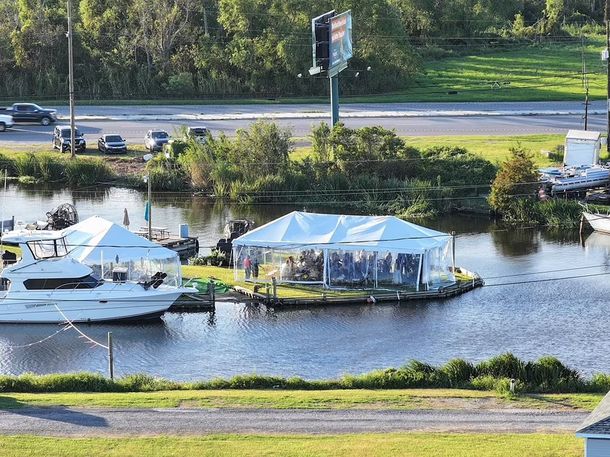 La ceremonia fue en un pantano donde el guía turístico ofrece experiencias con cocodrilos, garzas, garcetas y aves.