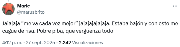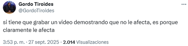 En este marco, un nuevo video de la actriz despertó nuevamente las opiniones negativas de los usuarios de X, que hicieron tendencia el clip bajo el hashtag "#Víctima", indicando que la artista sólo intenta ponerse en un lugar de melodramática al exponer el "bullying" que sufre desde su adolescencia.
