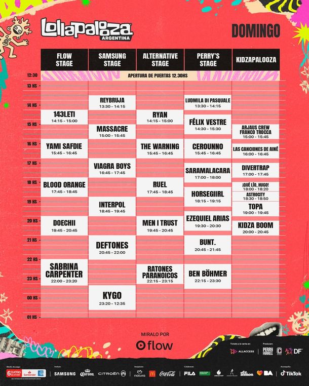 Lollapalooza 2026: la grilla del domingo hora por hora