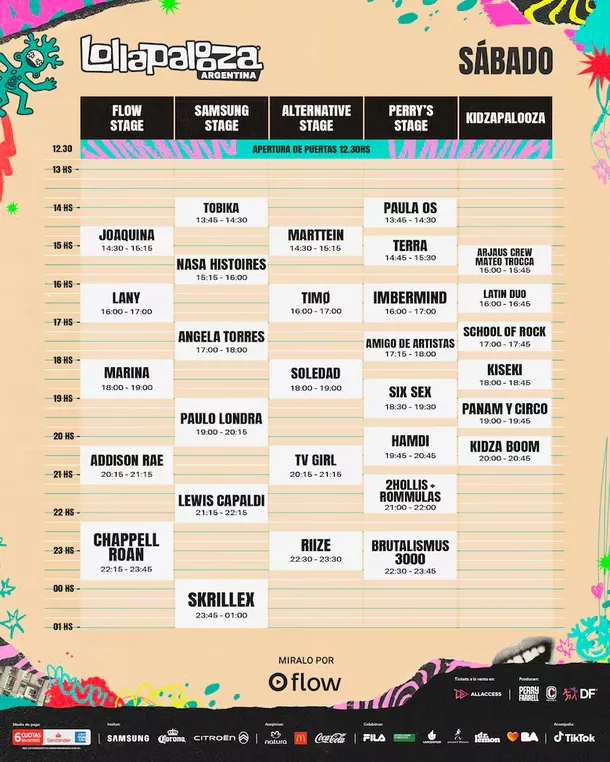 El sábado 14 de marzo la grilla se inclina hacia el pop de masas, la electrónica de alto impacto y el regreso de grandes figuras locales. Chappel Roan y Skrillex lideran un día que también contará con la emotividad de Lewis Capaldi y la presencia del argentino Paulo Londra.
