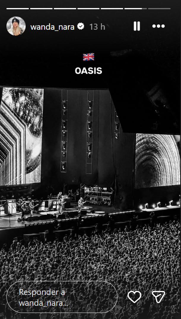 La conductora Wanda Nara siguió el show desde la platea, no sin antes mostrar su asombro por el espectáculo de drones que la banda había desplegado en la previa del evento. A través de sus redes sociales, la mediática filmó el concierto, capturando la multitudinaria celebración de los fans. Además, compartió una foto en blanco y negro del escenario, destacando la presencia de la bandera británica.