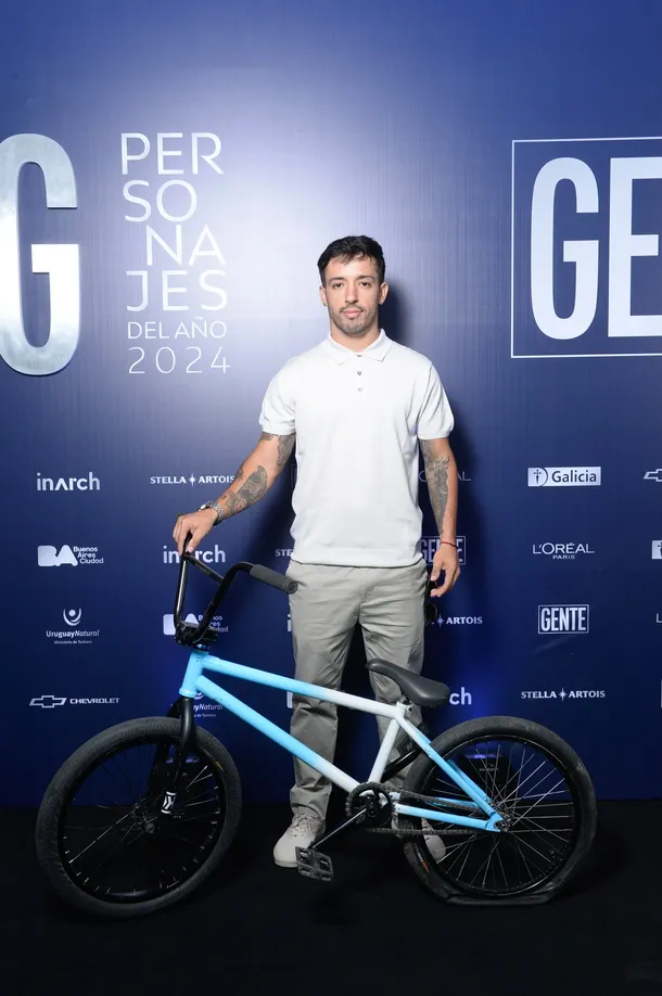 El deporte también tuvo su momento. José “Maligno” Torres, medallista de oro en BMX freestyle en los Juegos Olímpicos de París, asistió con su bicicleta, combinando un look casual con jean claro y chomba blanca. Por su parte, Luquitas Rodríguez eligió un traje gris con chaleco negro, dejando en claro que la elegancia no tiene reglas estrictas.