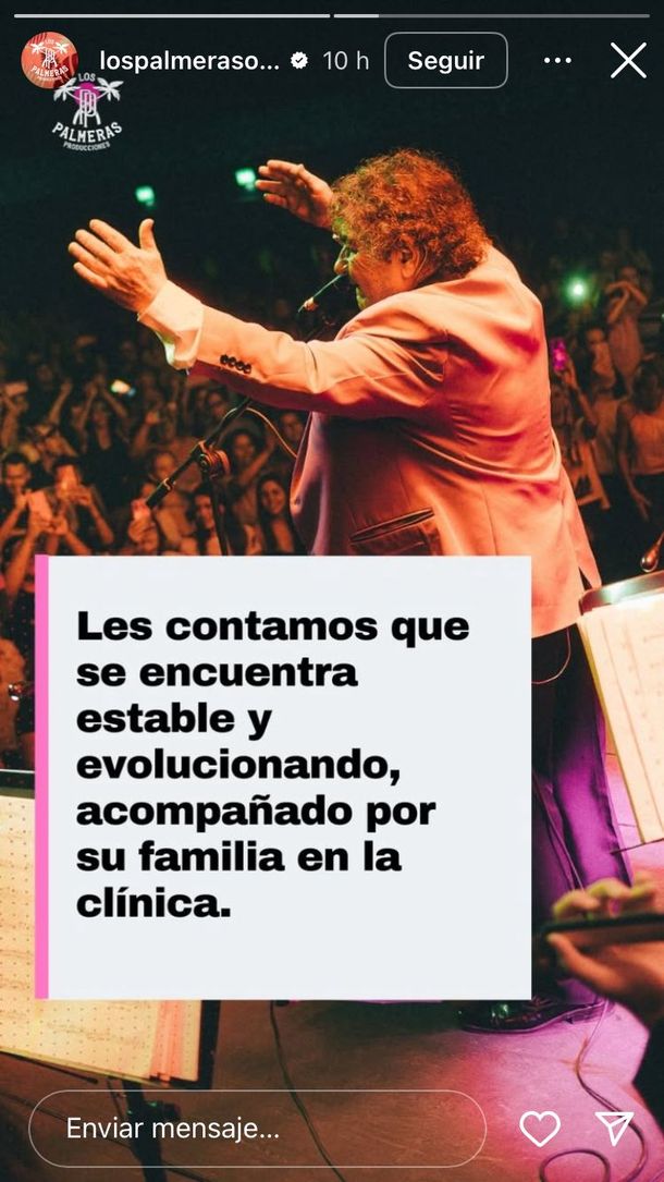 Los Palmeras difundieron un nuevo parte médico de Cacho Deicas: "Mejoría clínica y neurológica"