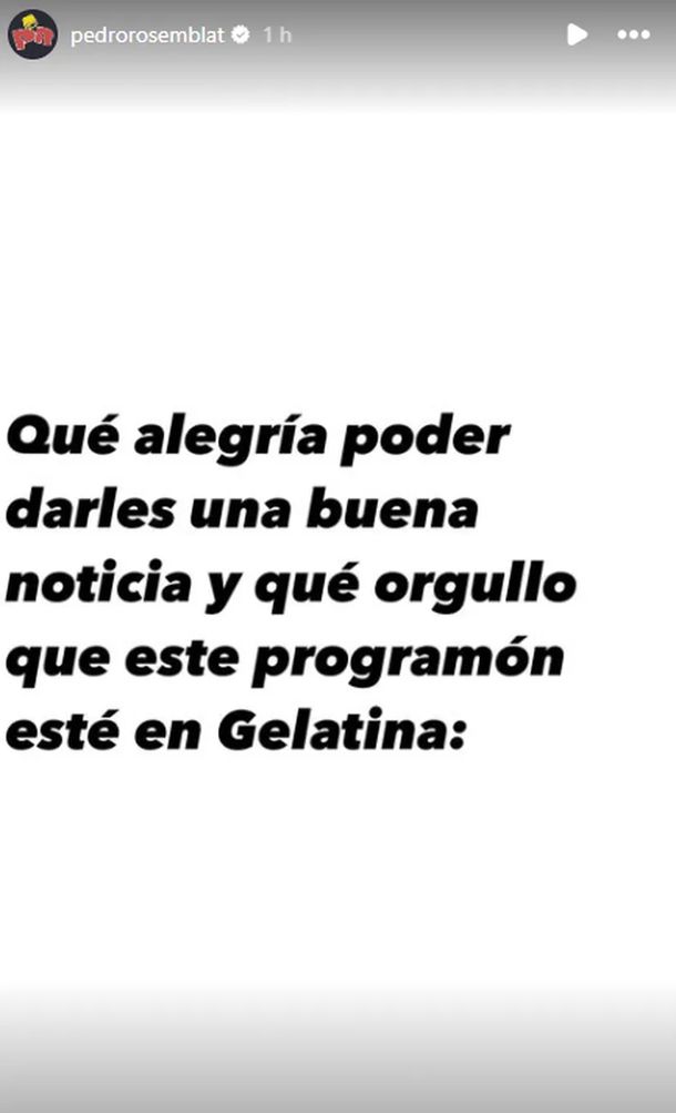 En medio del revuelo, Rosemblat decidió compartir una noticia laboral en su cuenta de Instagram: “Qué alegría poder darles una buena noticia y qué orgullo que este programa esté en Gelatina”, anunció, acompañando el mensaje con un video de Qué olor, el ciclo que conducirá junto a Noelia Custodio y Charo López.