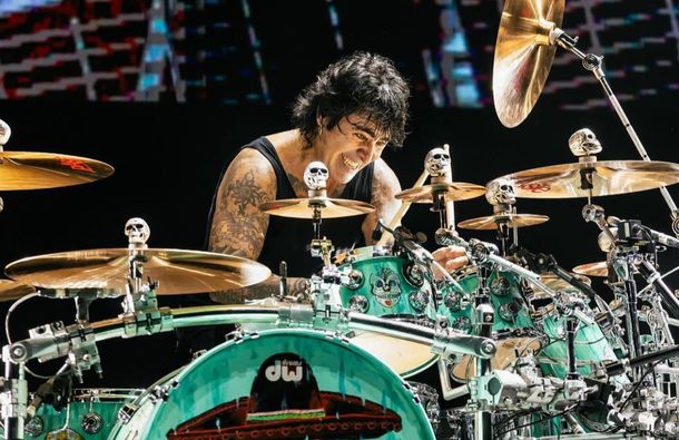 Por otro lado, Álex González fue el encargado de deleitar los ojos de todos los presentes con un solo de batería que duró aproximadamente 10 minutos. El incansable baterista se lució con sus palillos que iba cambiando a medida que los iba regalando al público.