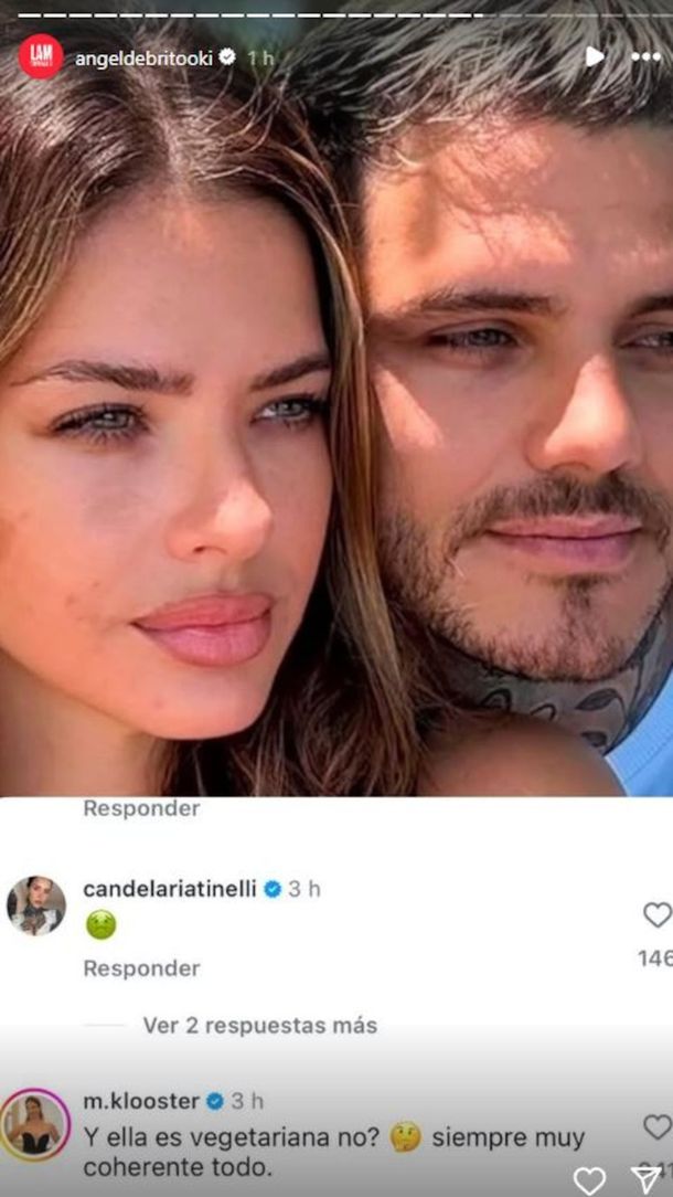 Mientras la hija de Marcelo Tinelli puso un emoji de vómito, la actriz fue un poco más expresiva: "Y ella es vegetariana, ¿no? Siempre muy coherente todo", en referencia a la China Suárez, que no come carne desde 2012.