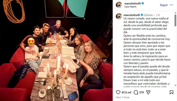 Más allá del festejo, el conductor utilizó sus redes sociales para compartir una reflexión personal sobre el momento que atraviesa. Con un tono introspectivo, escribió: “Un nuevo cumple, una nueva vuelta al sol, desde la paz, desde el saber elegir, desde una sensibilidad profunda que puede convivir con la practicidad del día”.