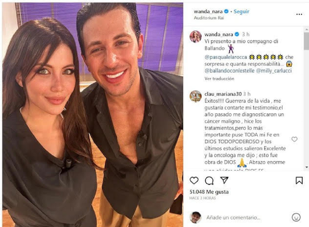 Wanda Nara baila con el napolitano Pasquale La Rocca, quien tiene todo para lucirse en el certamen. Ambos usaron sus redes sociales para presentar a su pareja de baile.