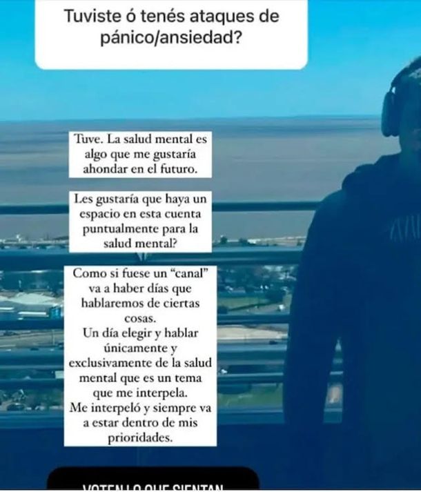 En una dinámica de preguntas y respuestas con los internautas, uno en particular le preguntó si en alguna oportunidad sufrió ataques de pánico a lo que respondió “Tuve ataques, la salud mental es un tema que me gustaría ahondar en un futuro”.