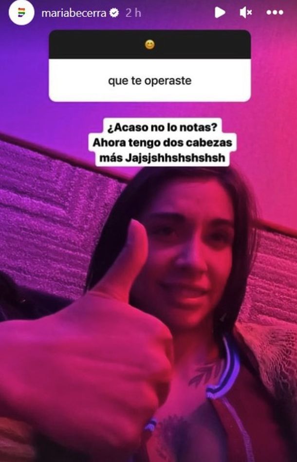 “¿Qué te operaste?”, escribió uno de ellos. La cantante publicó una selfie con cara de sorpresa ante la pregunta y respondió: “¿Acaso no lo notás? Ahora tengo dos cabezas más”.