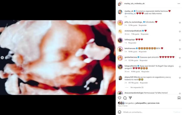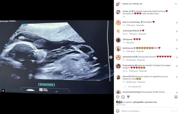 La imagen que compartió Marley rápidamente se hizo viral entre sus más de siete millones de seguidores, quienes reaccionaron con mensajes de amor y algunos emojis. “Qué emoción”, “Ay, qué linda, ya llega”, “Hermosa, falta menos”, “Milenka ya me superó en seguidores y eso que todavía no nació”, fueron algunos de los que más se repitieron.