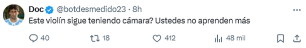 La furia de los internautas fue expresada también por otro joven que indicó: "¿Este violín sigue teniendo cámara? Ustedes no aprenden más".