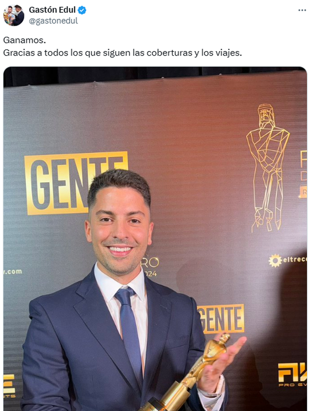 Este lunes se realizaron los Martín Fierro Digital y Gastón Edul fue uno de los ganadores. El periodista deportivo se quedó con la terna "Mejor contenido temático" y se mostró muy contento por el premio.