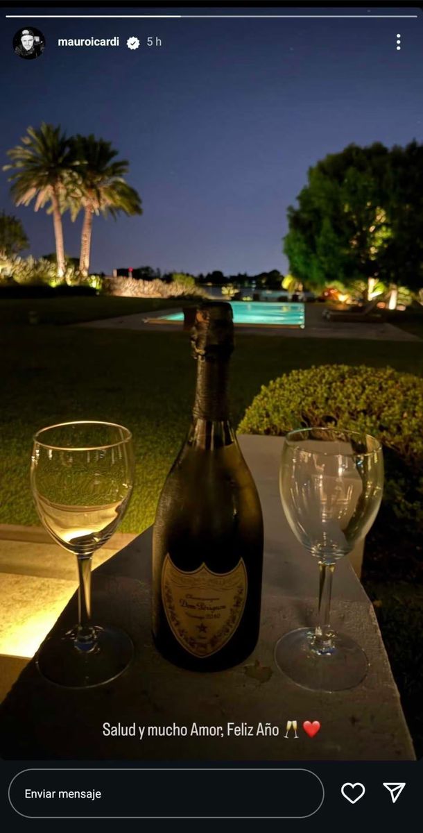 A través de su perfil de Instagram, el futbolista publicó una imagen en la que dejó ver dos copas y una botella de champagne. “Salud y mucho amor, feliz año”, escribió él junto a un emoji de corazón rojo.