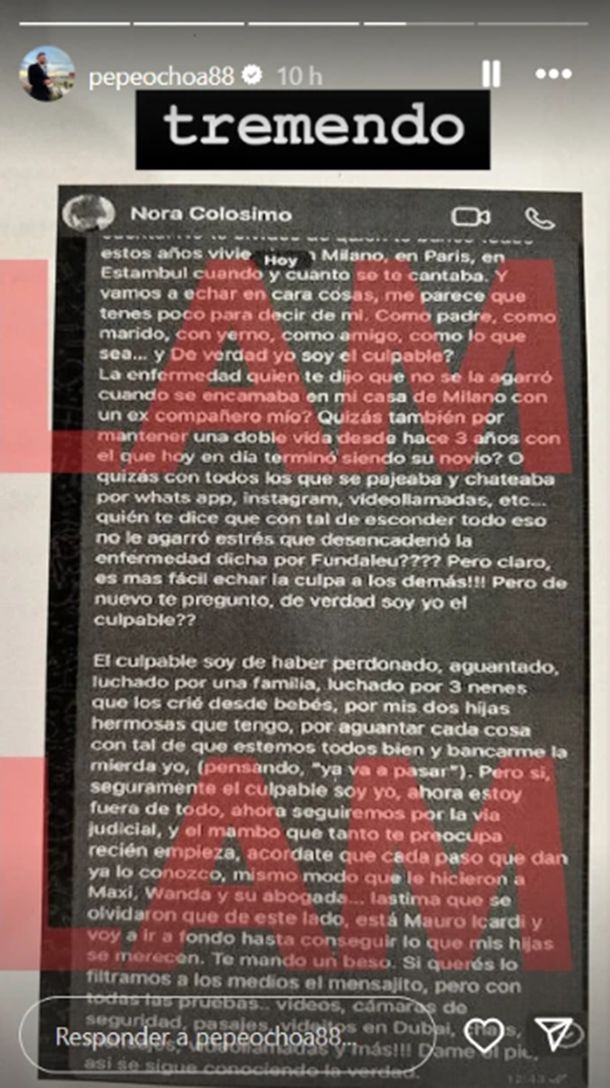 Icardi aprovechó los mensajes que Wanda decidió que mostraran la prensa de su madre, Nora Colosimo, en la cual todos quedaban sin respuesta por parte de Mauro, hasta que este miércoles la novela turca dio un giro inesperado con un contraataque directo, sin importar lo que pueda pasar.