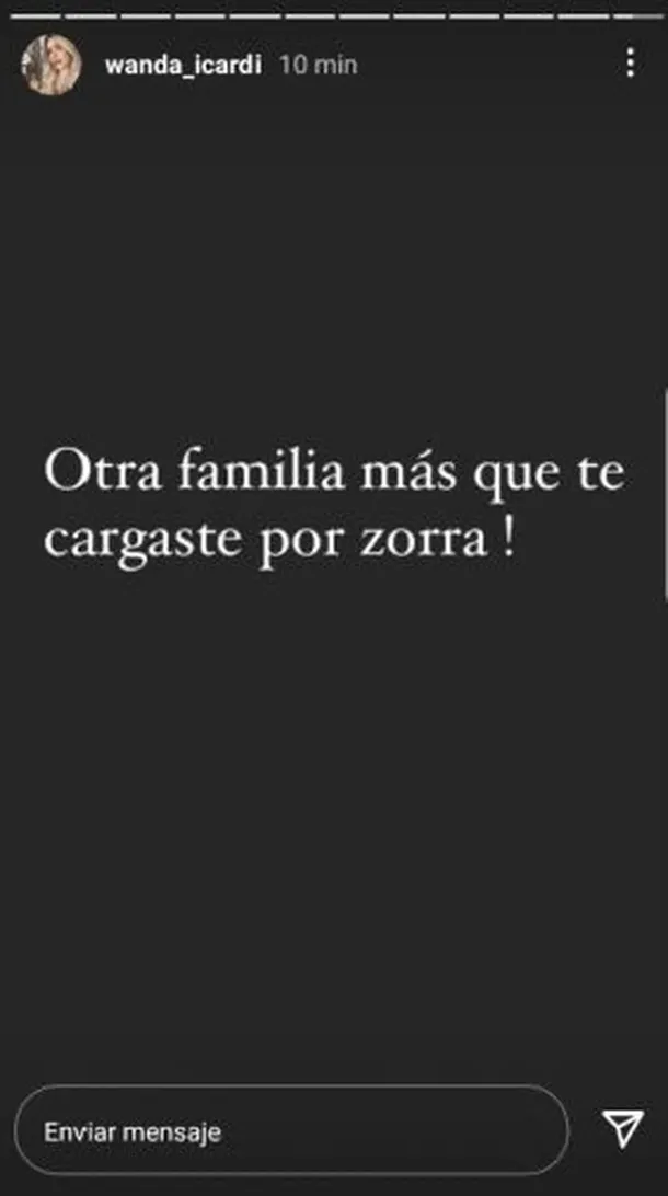 En ese contexto, la mediática utilizó sus redes sociales para lanzar un mensaje que rápidamente se volvió viral. “¡Otra familia más que te cargaste por zorra!”, escribió en una historia de Instagram que, si bien no mencionaba nombres propios, fue interpretada de forma directa como un ataque hacia la actriz y selló el inicio de un enfrentamiento público.