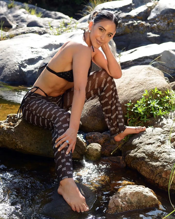 Microbikini de cuero con texturas, el look de Celeste Muriega que promete ser tendencia
