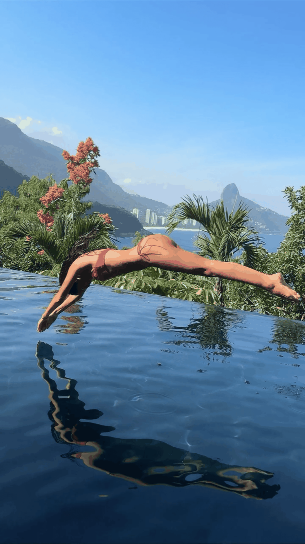 Desde Copacabana, Río de Janeiro, la hermana menor de Wanda se grabó mientras se tiraba de cabeza al agua y dejó ver un traje de baño de dos piezas diminuto con corpiño entero de breteles finos y terminación colaless cavada. El color fucsia del diseño, reafirmó su vigencia después del furor en 2023 por el fenómeno Barbie.