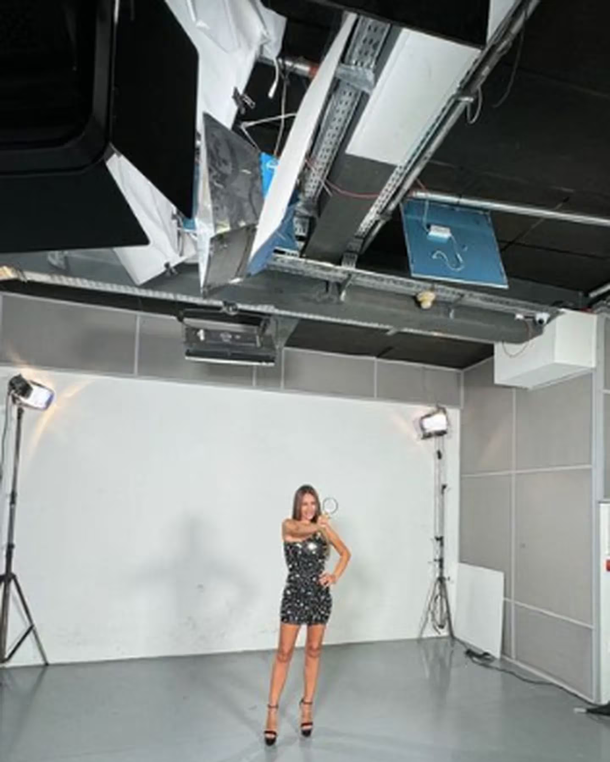 Hace unos días, Pampita viajó a Uruguay para participar en un programa de canto. Durante una sesión de fotos para el certamen, la modelo deslumbró a sus seguidores de las redes sociales con un vestido mini repleto de brillos y aberturas.