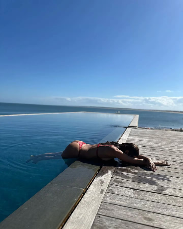 Disfrutando del fin de semana largo junto a su esposo Roberto García Moritán y su hija Anita, la modelo brilló desde un lujoso hotel en José Ignacio, Uruguay, luciendo una microbikini en tono rojo fuego. Estos trajes de baño fueron tendencia entre las famosas durante la última temporada.