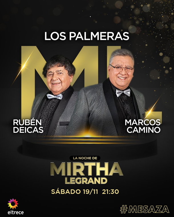 La "mesaza "de Mirtha Legrand tiene para este sábado todos los invitados confirmados: Rubén Deicas y Marcos Caminos (Los Palmeras), la militante macrista Débora Plager, el fislcal macrista José María Campagnoli e Iliana Calabró.