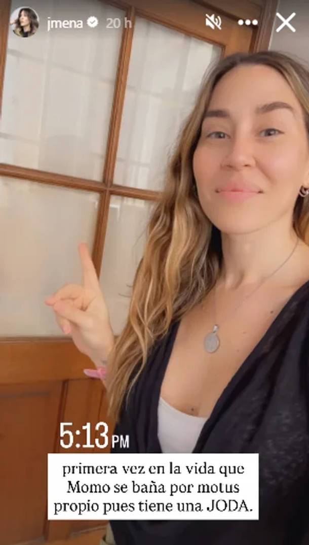 Luego, compartió cómo Momo, dos horas antes de la salida, ya preguntaba por el horario del evento. Lo acompañó con el texto “La ansiedad. La previa” y sumó un clip tierno de Arturo, su bebé de dos meses, quien se entretenía con un simple trozo de plástico.
