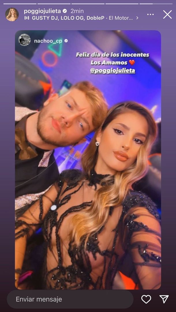 Dos horas más tarde del primer posteo, las sospechas de que era todo mentira fueron más fuertes y con la misma coordinación tanto Nacho Castañares como Julieta Poggio aclararon desde sus stories: “Feliz Día de los Inocentes. Los amamos”.
