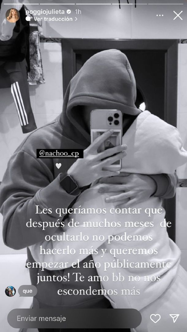 Primero, Julieta comenzó escribiendo: “Les queríamos contar que después de muchos meses de ocultarlo no podemos hacerlo más, y queremos empezar el año públicamente juntos. ¡Te amo, bebé! No nos escondemos más”.