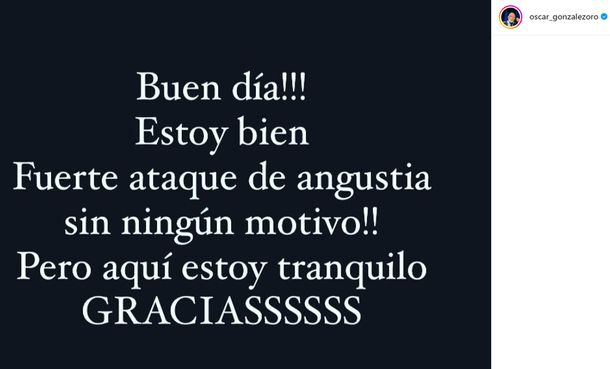 Después de 12 horas de silencio, el periodista aclaró sus palabras: “Buen día. Estoy bien. Fuerte ataque de angustia sin ningún motivo. Pero aquí estoy, tranquilo, gracias.”