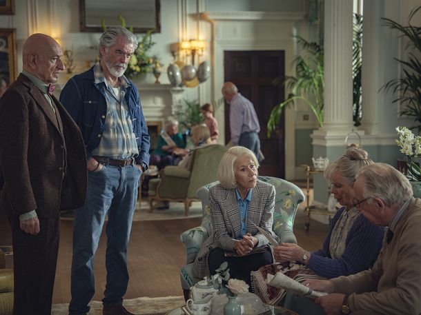 Un elenco de lujo: La película reúne a un verdadero seleccionado de actores británicos. Ver a leyendas como Pierce Brosnan, Helen Mirren y Ben Kingsley en pantalla juntos es, en sí mismo, un motivo suficiente para no perdérsela. Su química es el alma de la historia, dándole vida y carisma a los personajes.