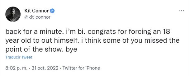 “Todavía somos todos muy jóvenes para comenzar a especular sobre nuestras sexualidades y tal vez presionarnos para que salgamos del armario cuando tal vez no estemos listos”, había expresado Kit Connor al podcast ReignWith Josh Smith en mayo.