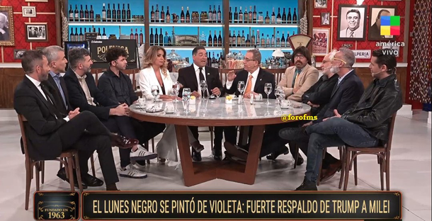 Uno de los momentos más comentados de la noche fue el debate sobre la situación económica del país. Los panelistas analizaron el respaldo del Tesoro de Estados Unidos a la Argentina y la baja del dólar, lo que generó un intenso intercambio de opiniones.